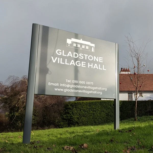 GLADSTONE VILLAGE HALL | POST & PANEL SIGN | DIRECTIONAL SIGN | FINGER POST SIGN | VINYL GRAPHICS | CHESHIRE